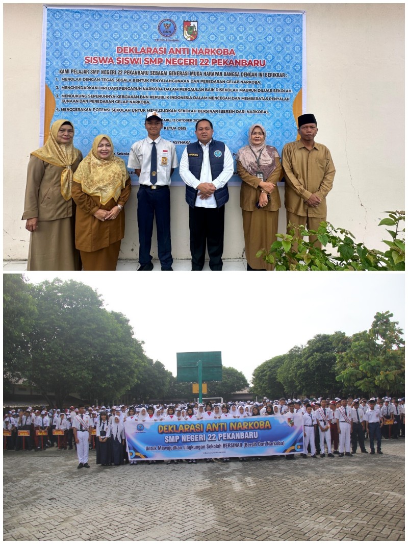 Momentum penting terjadi ketika Ketua OSIS SMPN 22 menandatangani Deklarasi Anti Narkoba yang disaksikan langsung oleh Kepala Sekolah dan Kepala BNNK Pekanbaru. Penandatanganan itu menjadi simbol komitmen bersama untuk menjadikan SMPN 22 sebagai “Sekolah Bersinar” — sekolah yang bersih dari narkoba.