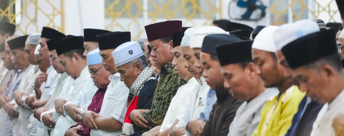 Teluk kuantan, Laksamananews.com – Mengawali malam pertama Bulan Suci Ramadhan 1447 Hijriah, Bupati Kuantan Singingi (Kuansing), Dr. H. Suhardiman Amby, MM, bersama jajaran Pemerintah Kabupaten Kuantan Singingi melaksanakan Shalat Isya dan Tarawih berjamaah di Masjid Agung Ar Raudah, Rabu malam (18/02/2026).
