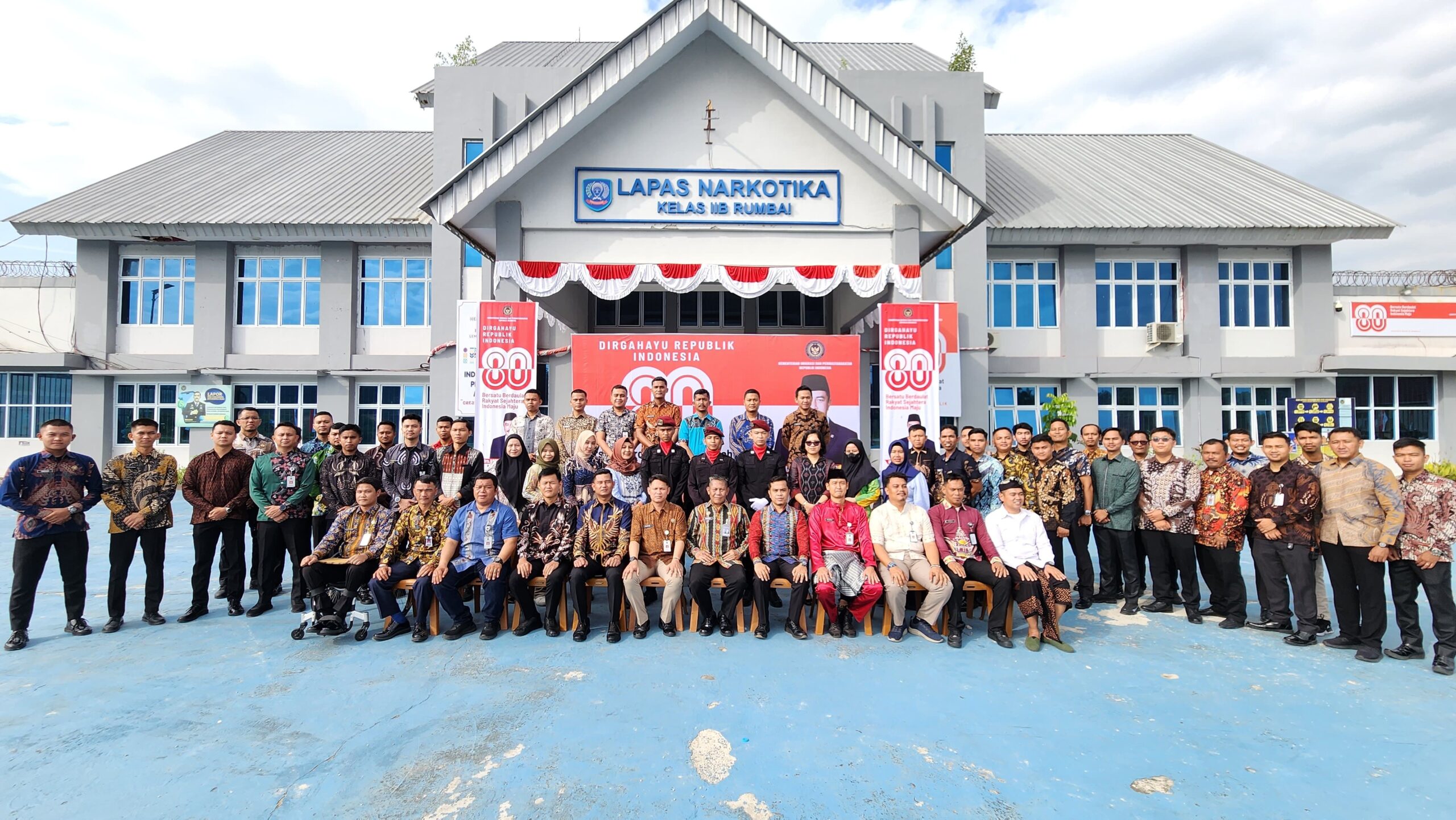 Upacara dimulai pukul 08.00 WIB di lapangan utama Lapas. Seluruh peserta upacara tampak mengenakan pakaian dinas lengkap. Kepala Lapas (Kalapas) Narkotika Kelas IIB Rumbai, Reinhards Indra Pitoy, bertindak sebagai inspektur upacara.