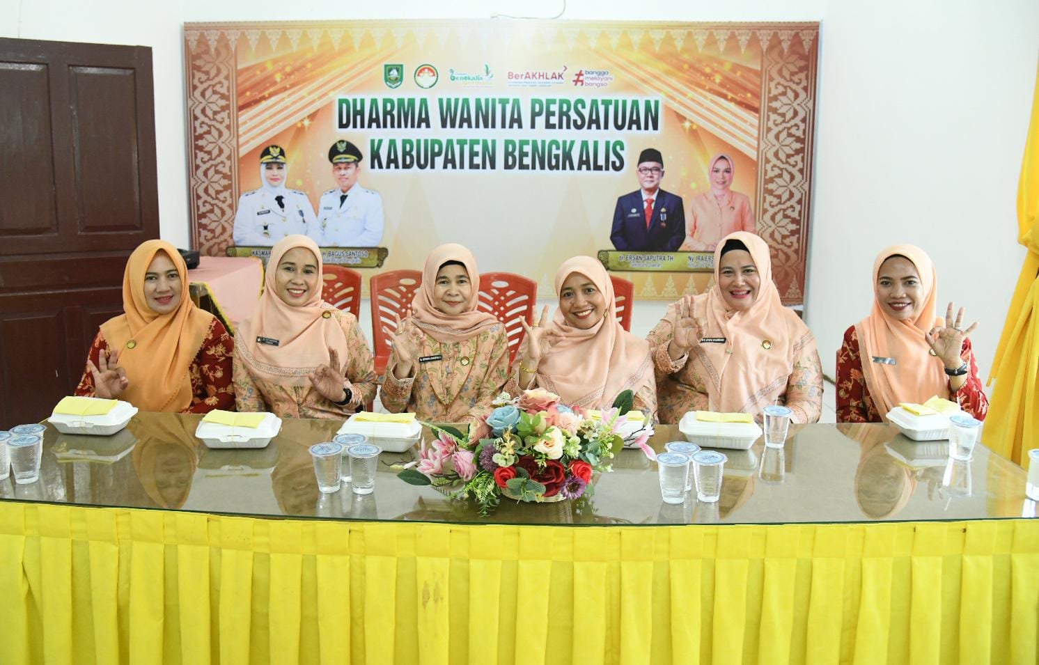Ketua DWP Kabupaten Bengkalis Ny. Ira Vandriyani Ersan, diwakili Sekretaris DWP, Sefniwita Idson Johansyah bersama sejumlah anggota lainnya mengikuti secara seksama kegiatan tersebut.