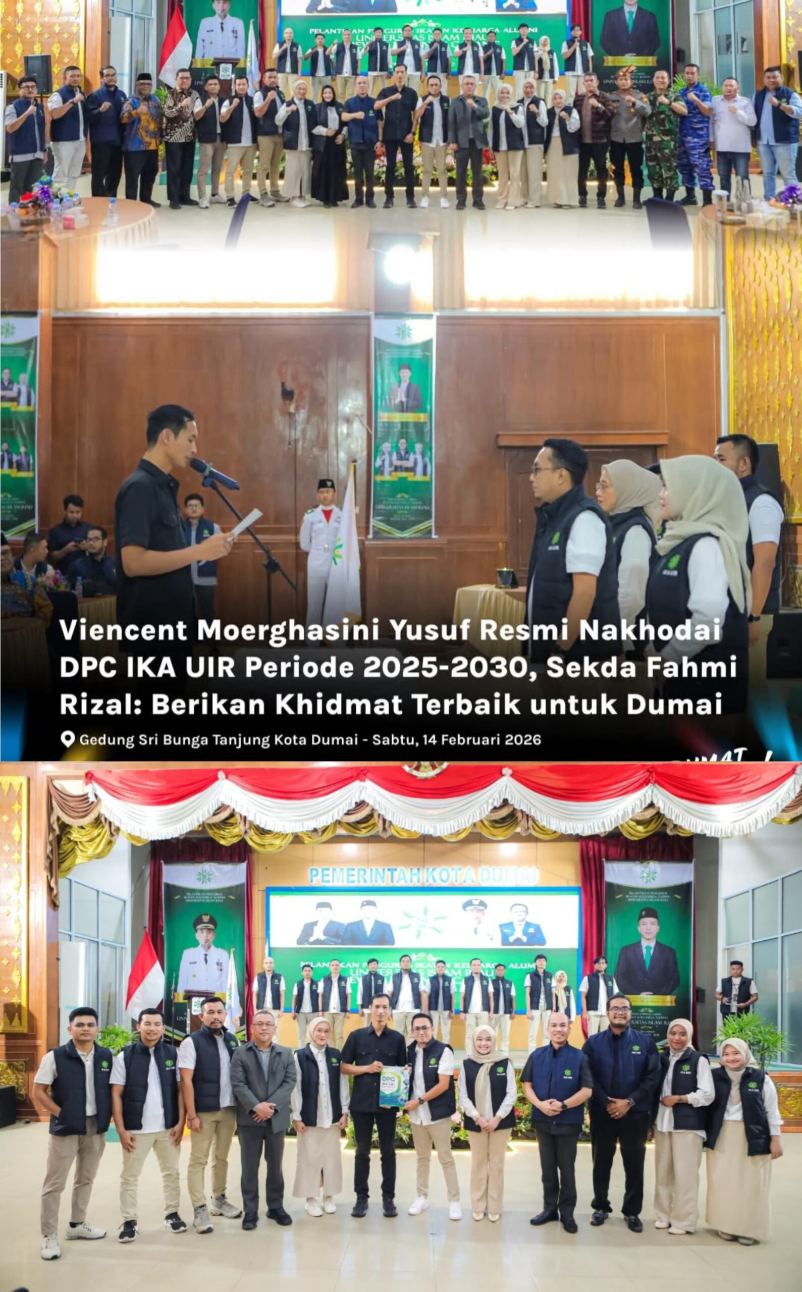 Berdasarkan Surat Keputusan DPP IKA UIR Nomor: 091/KPTS/DPP-IKAUIR/X/2025, Viencent Moerghasini Yusuf, S.I.Kom resmi dikukuhkan sebagai Ketua DPC IKA UIR Kota Dumai, didampingi oleh Sekretaris Ghina Mayori, S.Psi, dan Bendahara Ananda Putri Salsabila, S.M., M.M.
