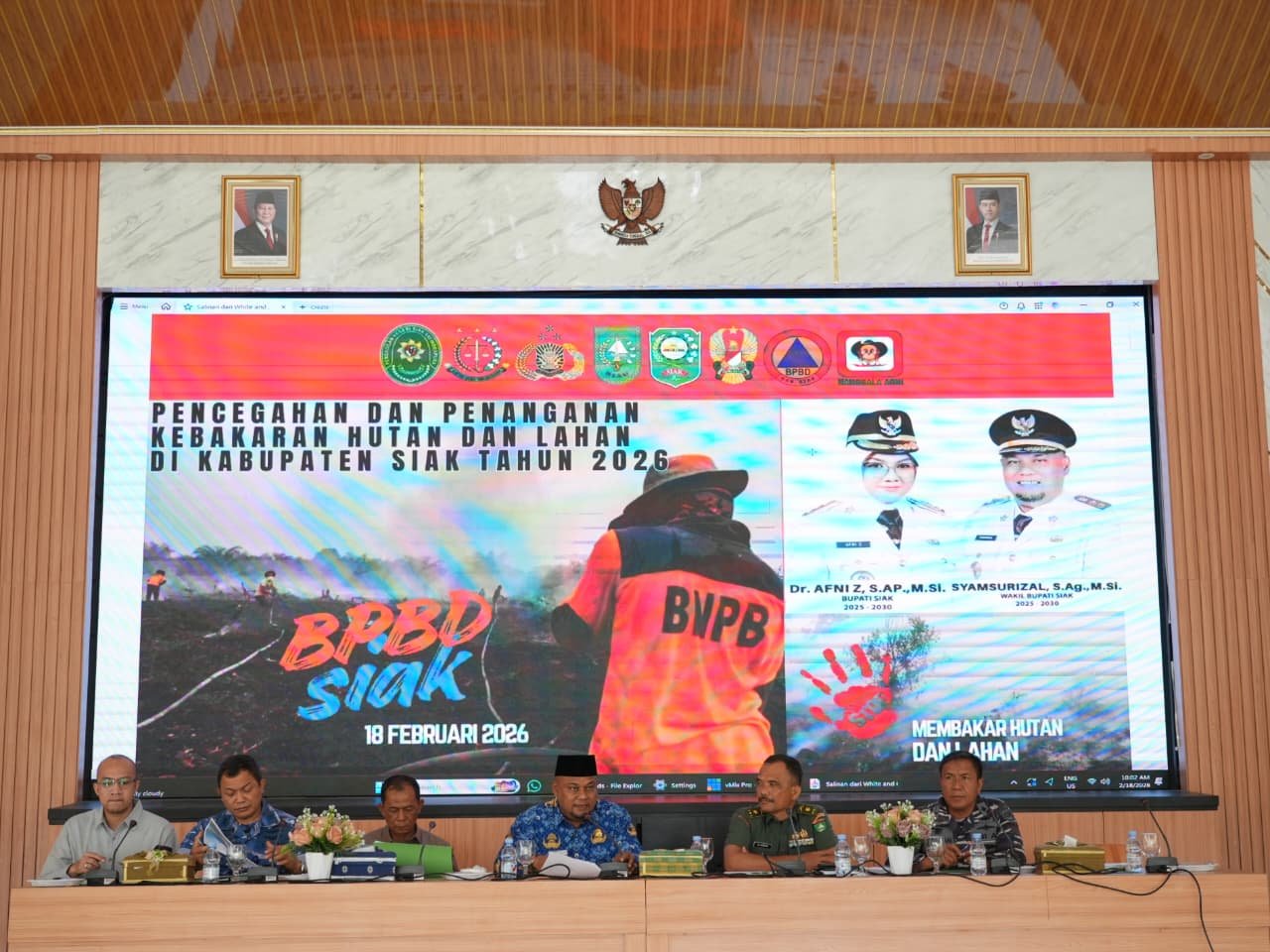 “Alhamdulillah Kabupaten Siak sampai saat ini masih aman, kami berharap kepada semua terutama perusahaan besar di samping menjaga kondisi lahannya. Kami juga berharap untuk tetangga dekatnya jika kebakaran harus turun membantu walaupun bukan lahannya,” kata Syamsurizal saat memimpin Rapat Forkopimda bersama perangkat daerah dalam rangka pencegahan Karhutla tahun 2026 di Balairung Datuk Empat Suku, Komplek Rumah Rakyat, Rabu (18/2/2026).
